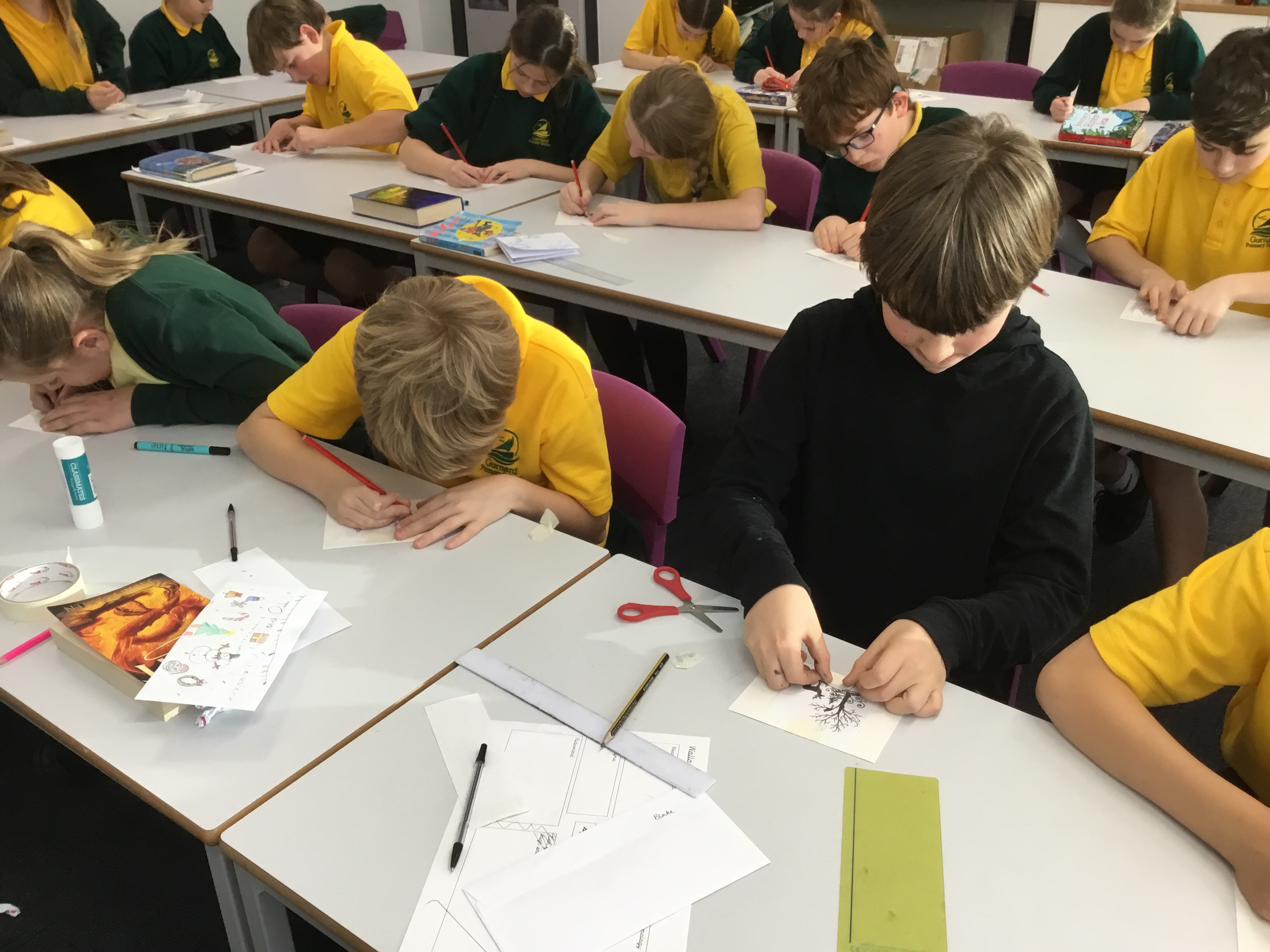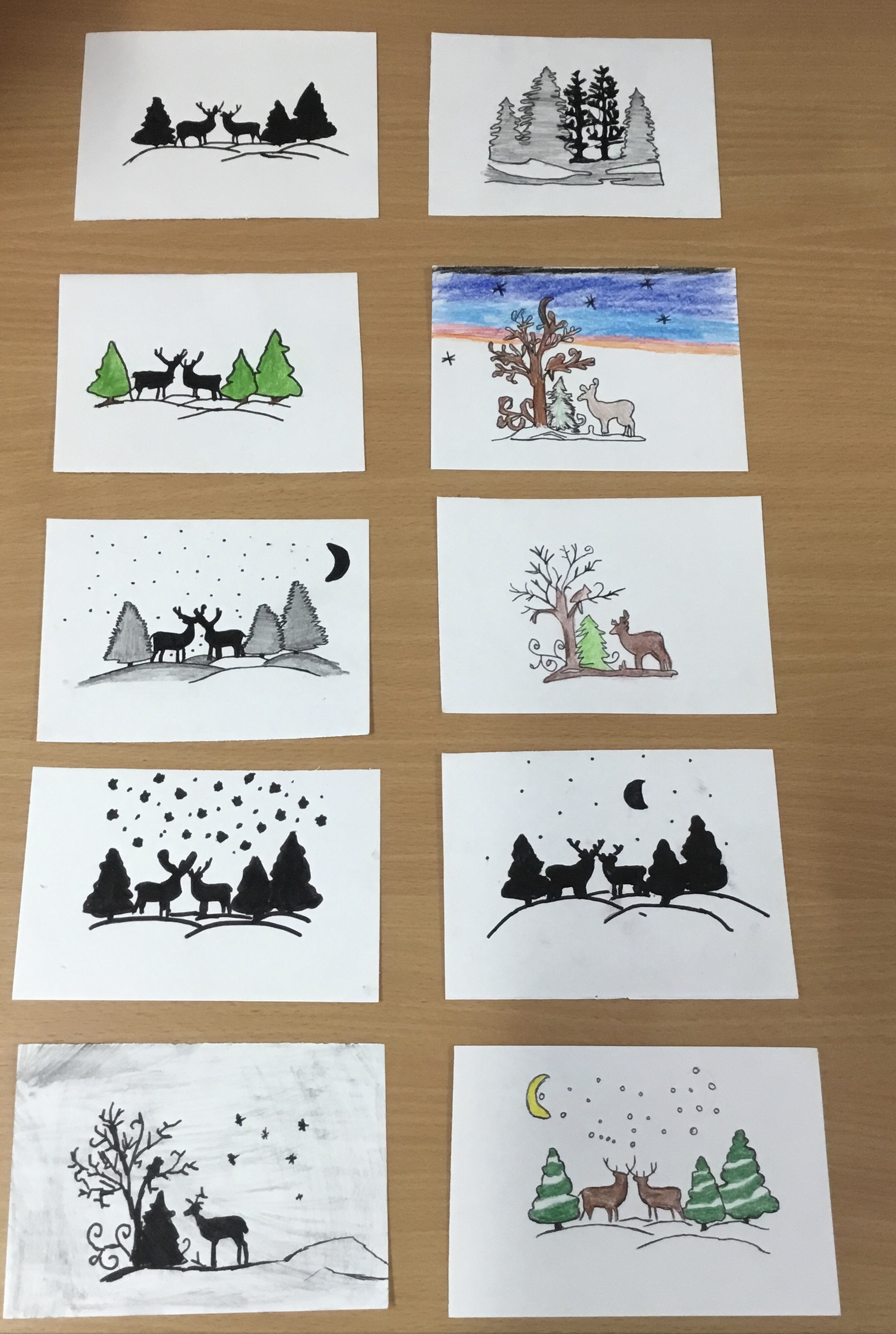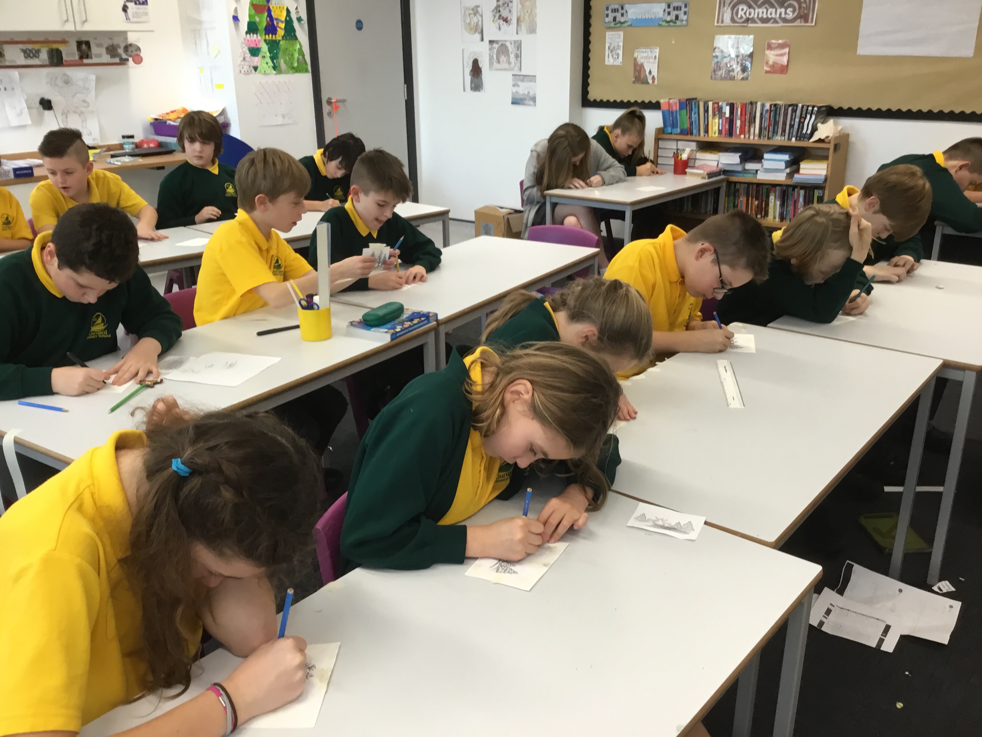 Year 6, learnt how to transfer an image of a Winter scene onto another piece of paper. They then outlined their transfer and coloured it in. These images will be copied onto card, making a special Christmas card to take home.