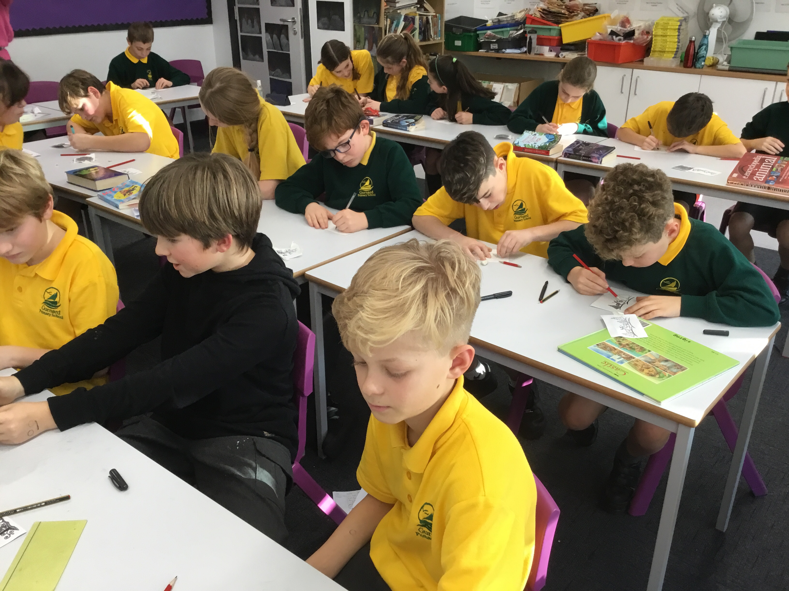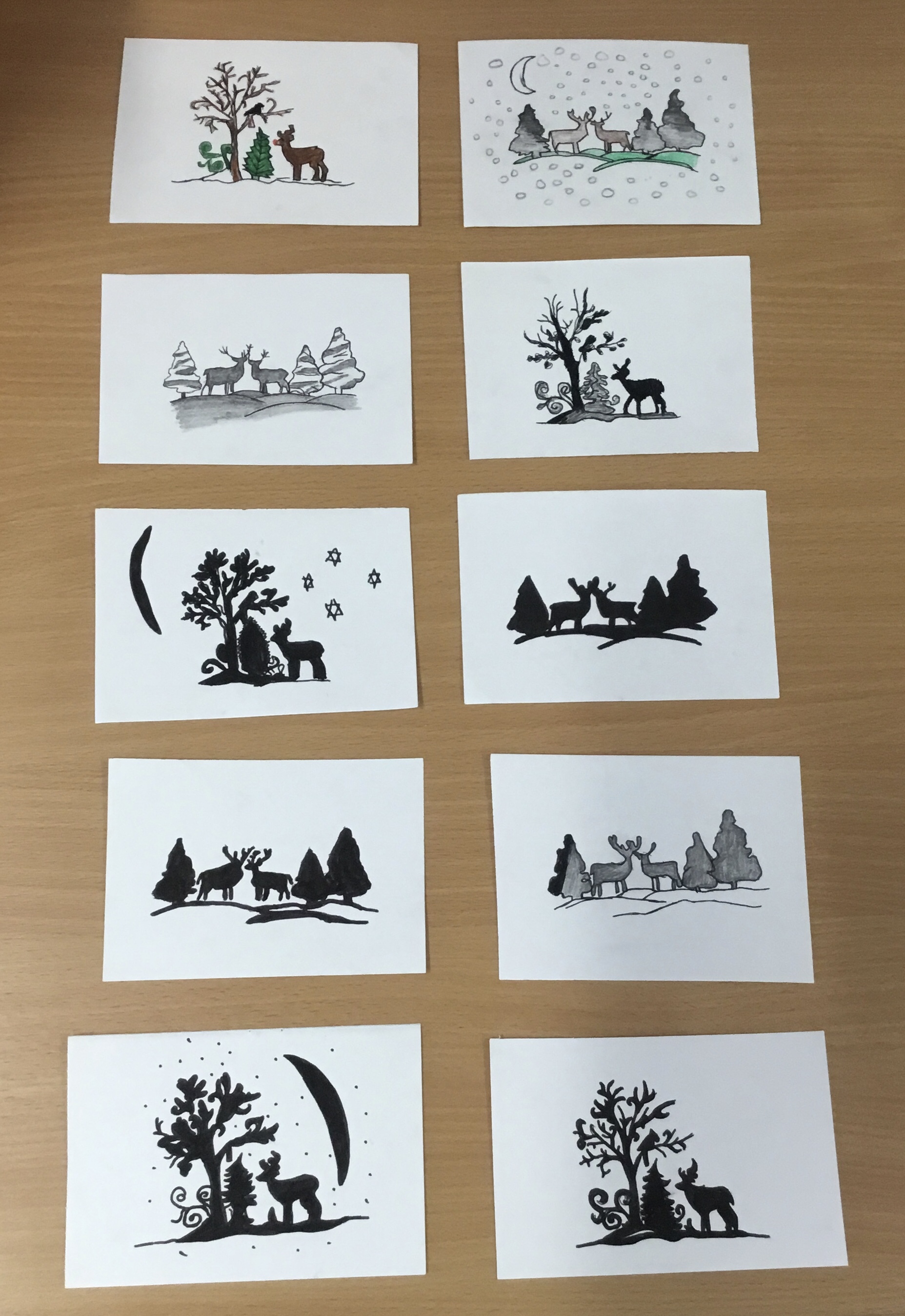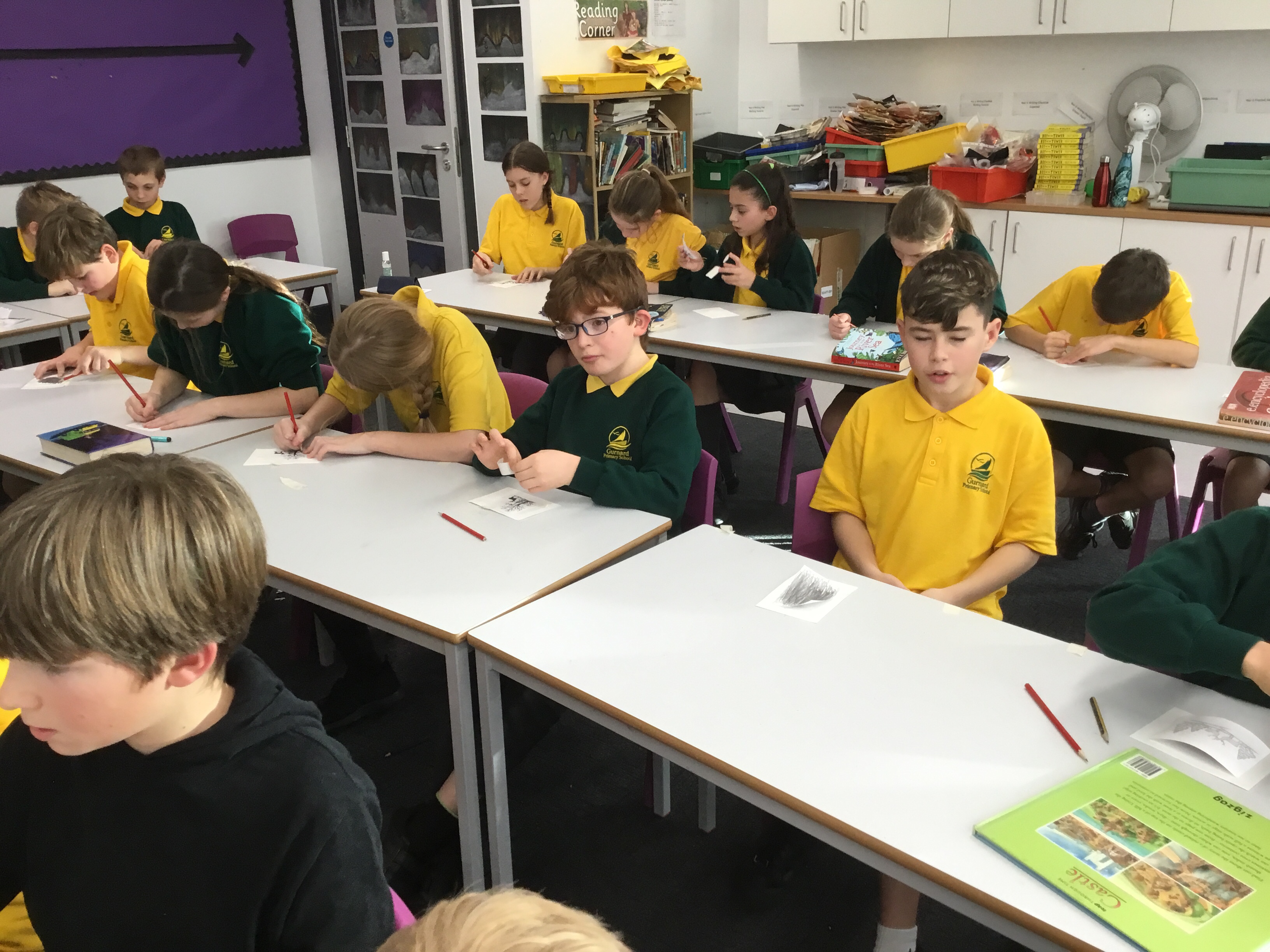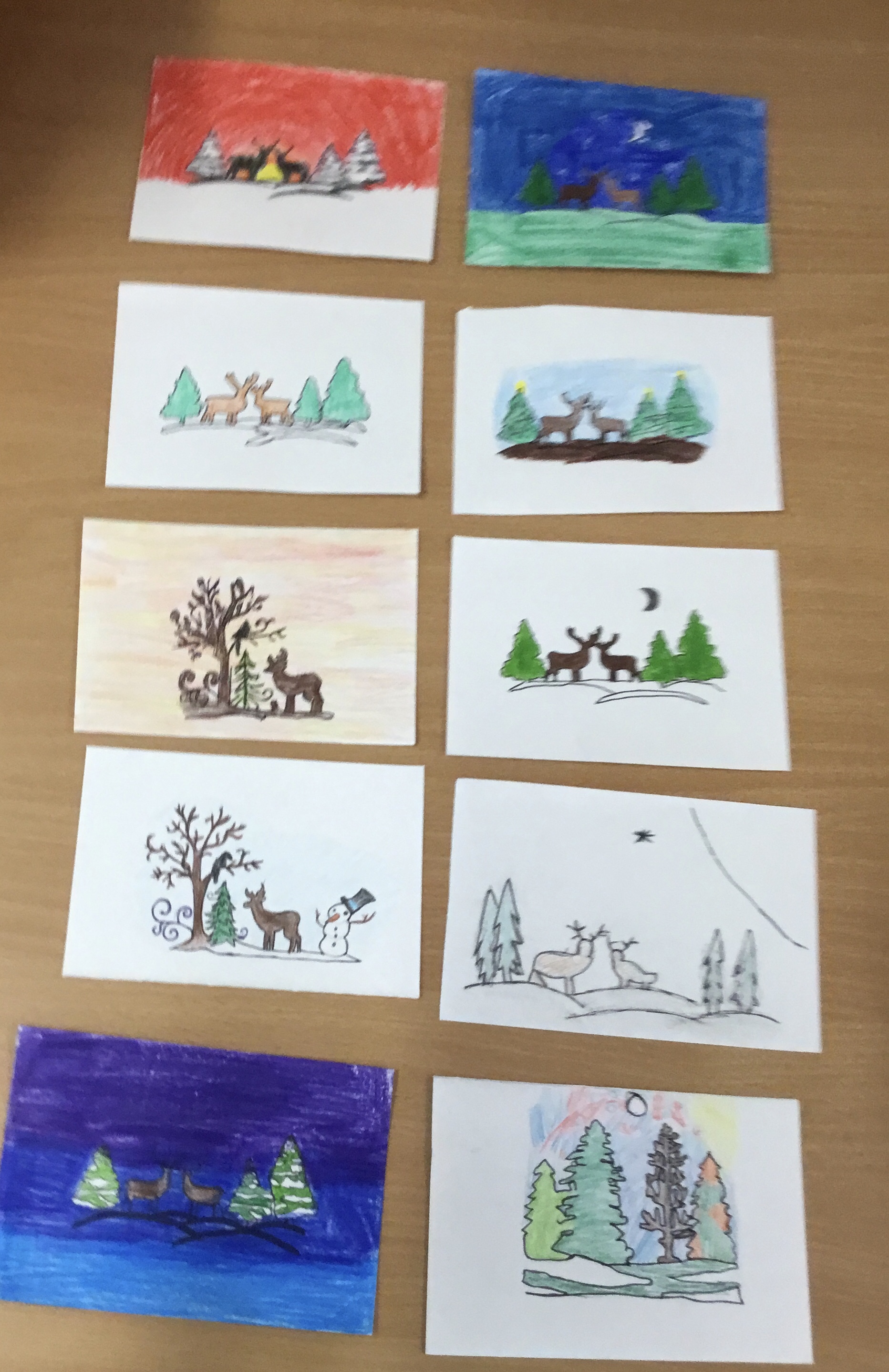 Year 6, learnt how to transfer an image of a Winter scene onto another piece of paper. They then outlined their transfer and coloured it in. These images will be copied onto card, making a special Christmas card to take home.